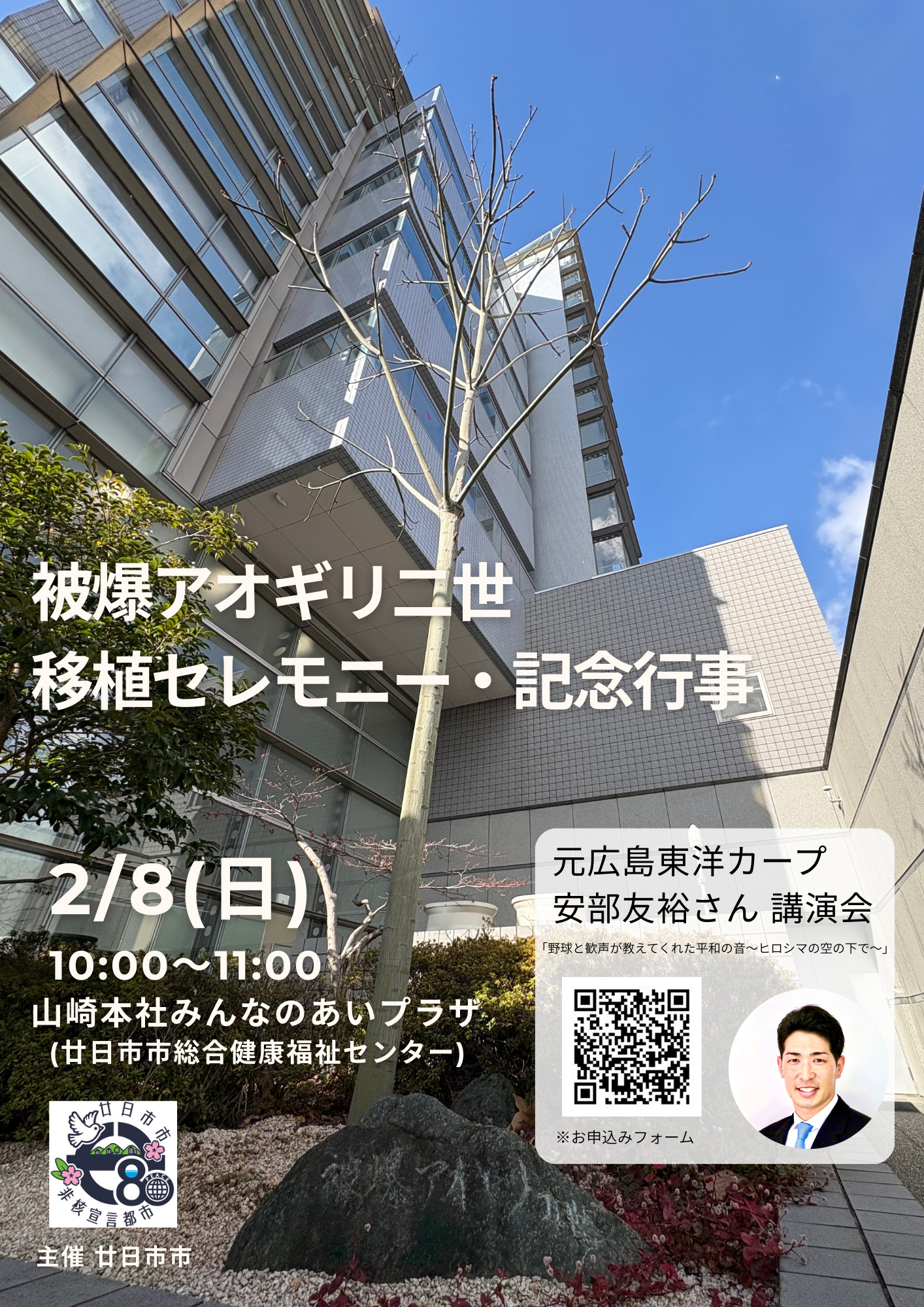 【被爆アオギリ二世移植セレモニー・元広島カープ安部友裕さん講演会参加者募集】